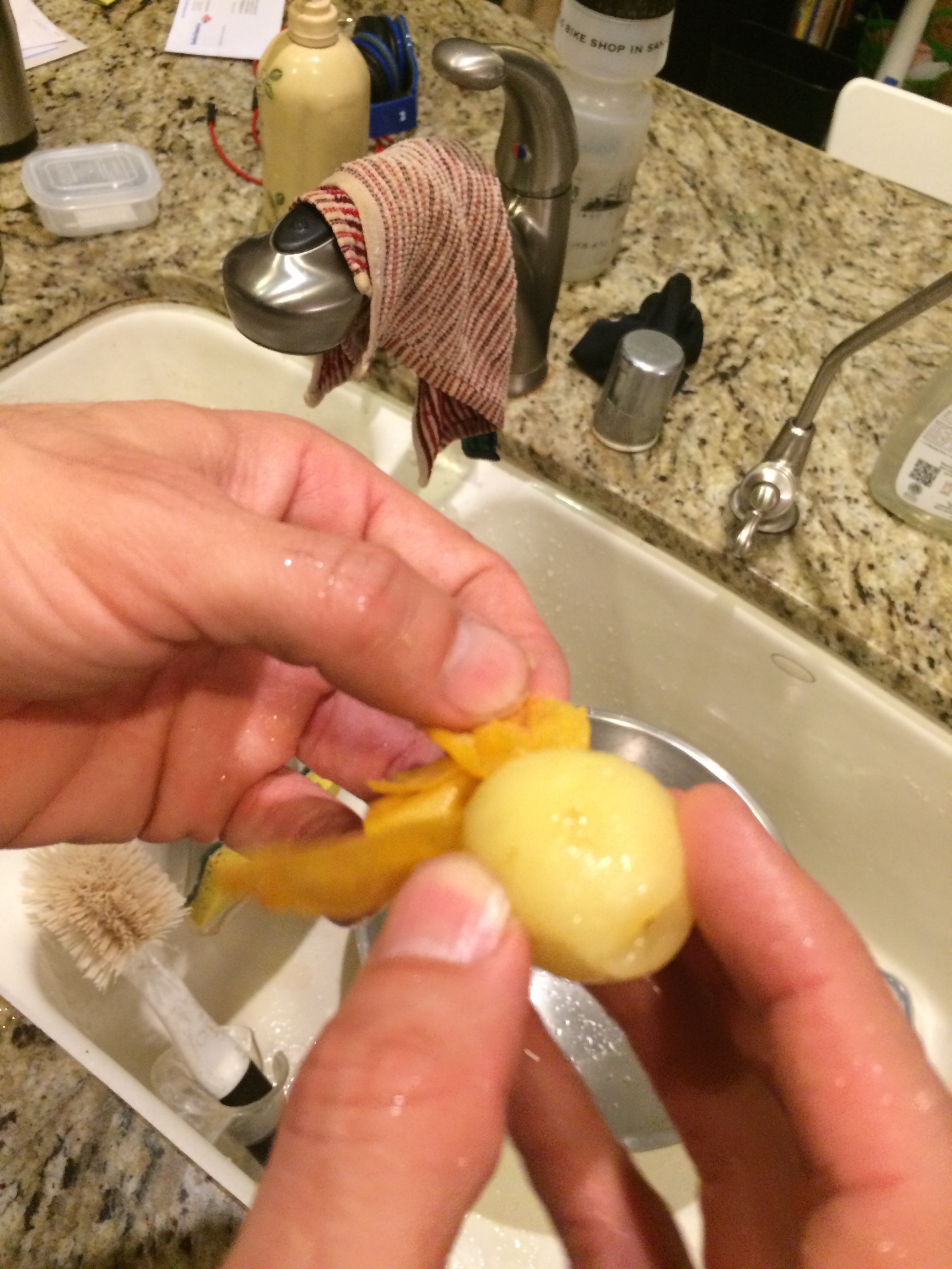 This usually never happens, but all three of us liked these. We decided to peel them- no blanching, no problem, the peel slipped right off. We decided that loquats taste almost exactly like pears, with similar texture even. I wonder if they would be good in smoothies? That’s what I’m making everyone eat for breakfast tomorrow since I have too many over ripe bananas occupying valuable space in the freezer. No loquat seeds will be added, I promise.