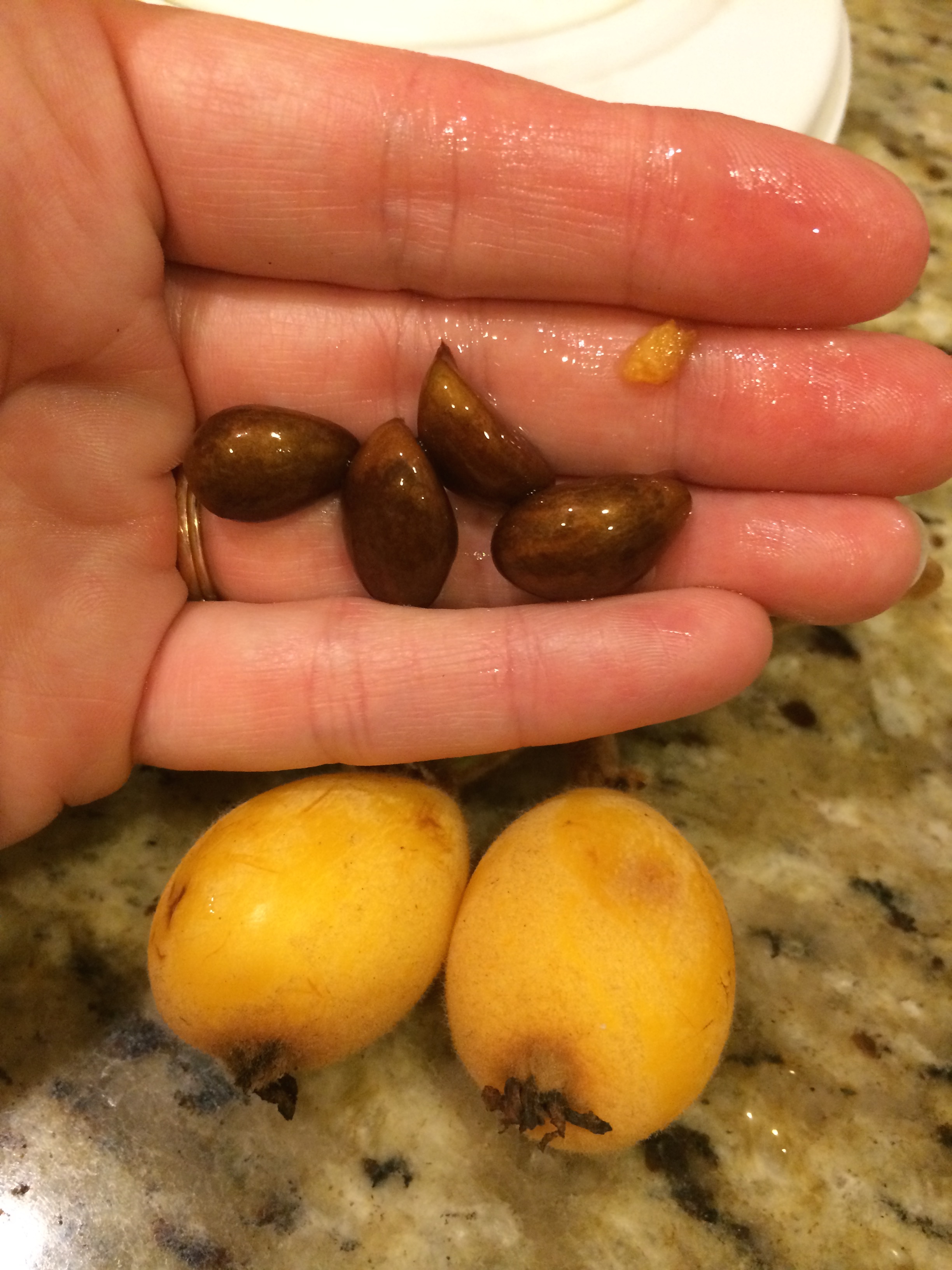 Does one even peel a loquat?Big, honkin’, deadly, seeds, one to four per fruit