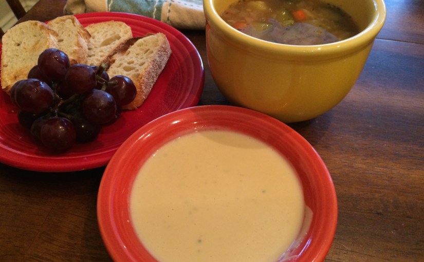 It’s a New Menu Monday… I didn’t Change my basic Chicken Vegetable Soup, but instead of serving it with rolls or garlic bread, I tried a new recipe. A Beer Cheese Dip, yum!