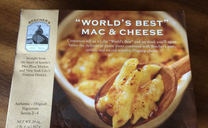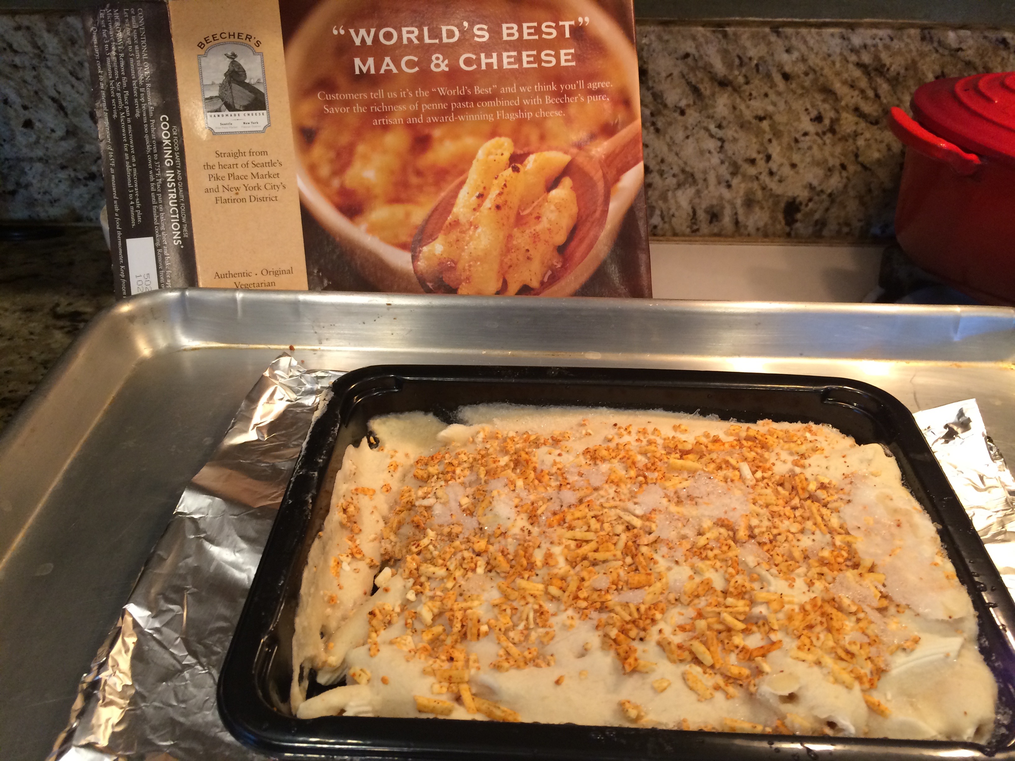 This particular box is put out by the people of Beecher’s Handmade Cheese Shop and claims their customers deem this “the World’s Best.” But is it really? I made the teens put down their blue box… really, I had just told them that I was popping this stuff in the oven and they had forgotten no less than 15 minutes later (insert here the groan that only the mom of hungry teenagers can produce).