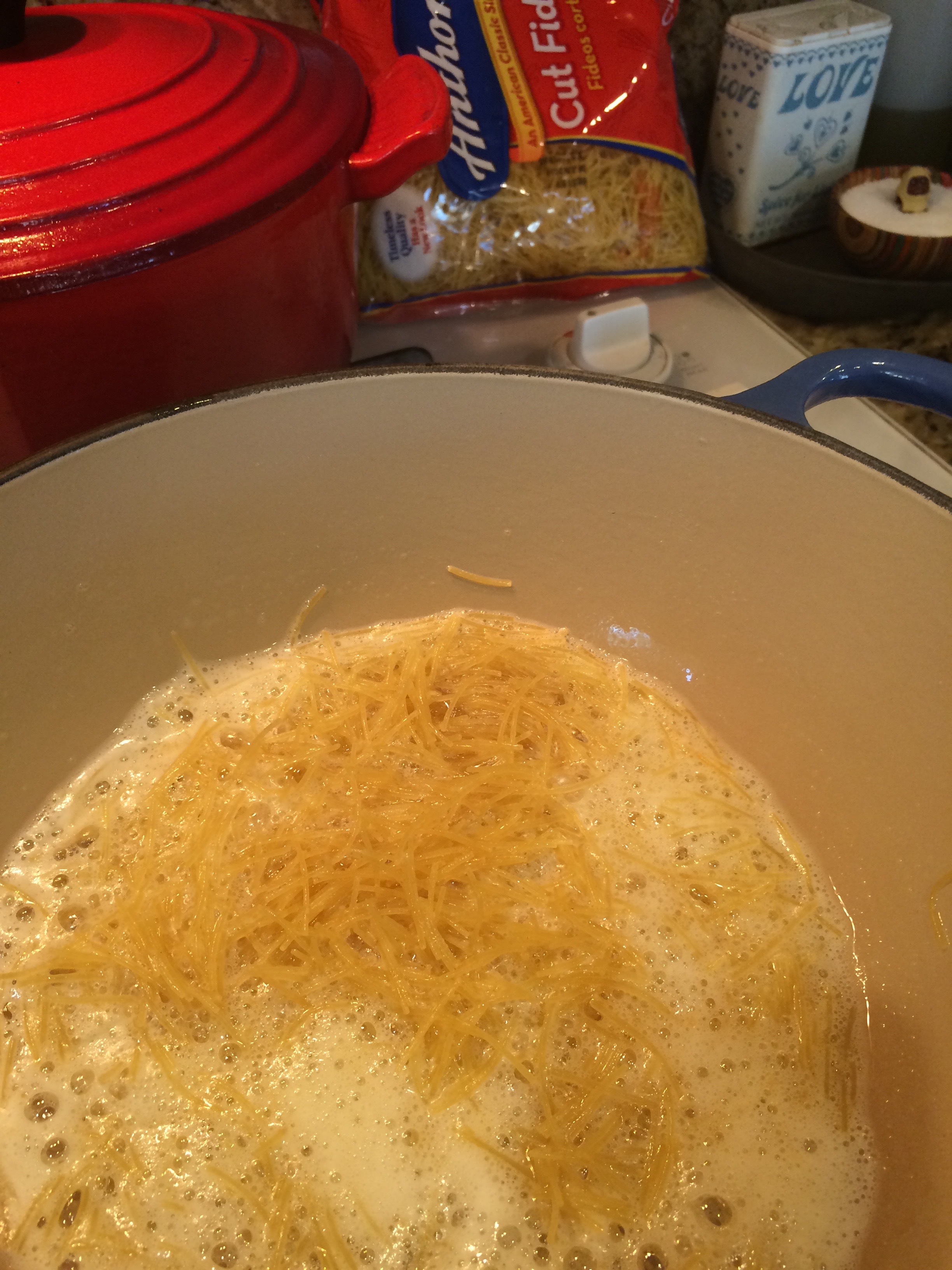 2- In a heavy pot, brown the pasta in the butter over medium heat for about three minutes. Watch out- it will turn from light to browned very quickly… in about as much time it takes to snap a picture of it for you blog, for instance, it can go from blond to over browned. Yep.