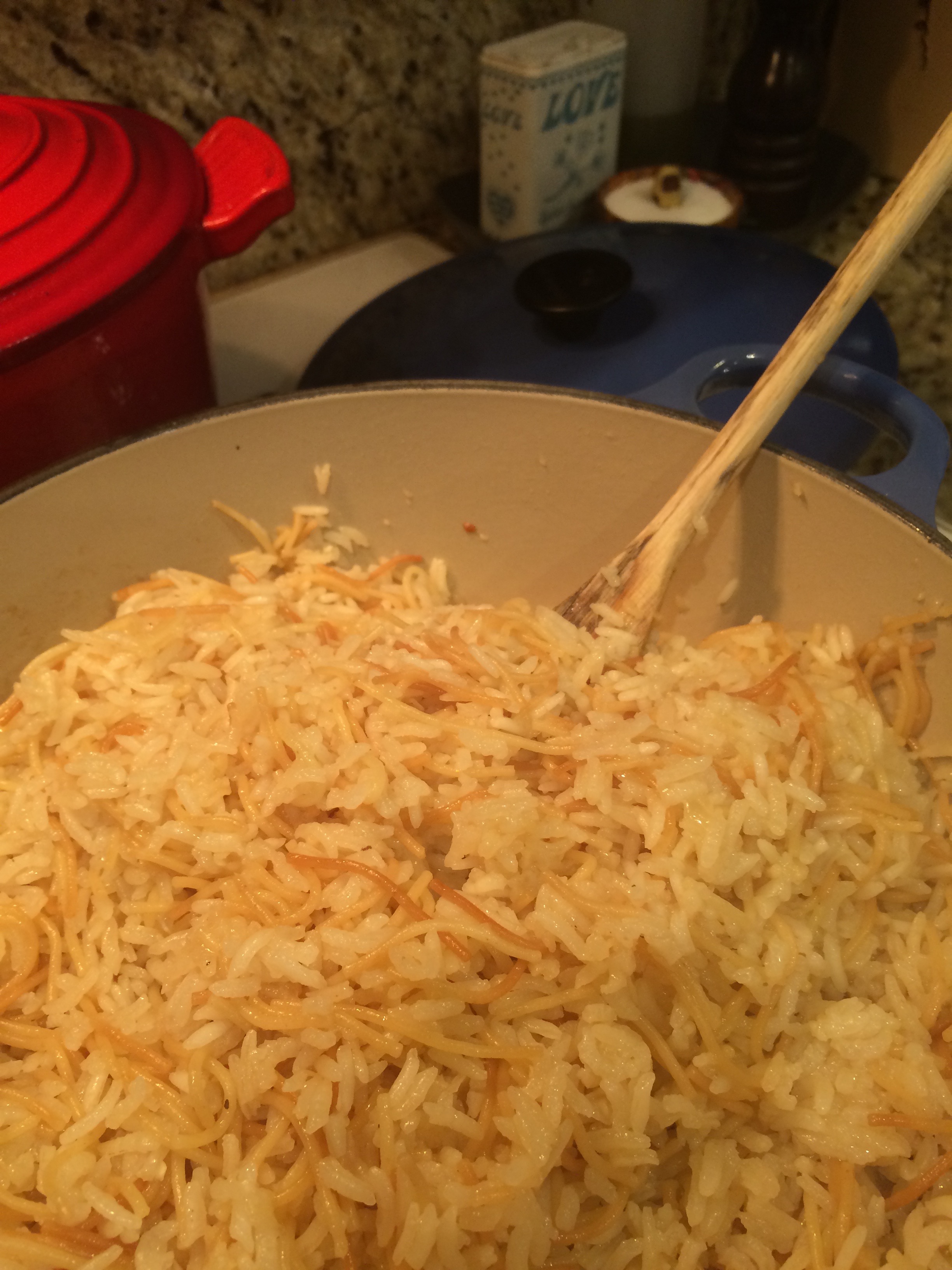 5- Let your pilaf finish by resting with a towel between the lid and the pot. Fluff up and serve! I’ve never done this extra step before, with the towel, but I really think it did help keep the pilaf fluffy.