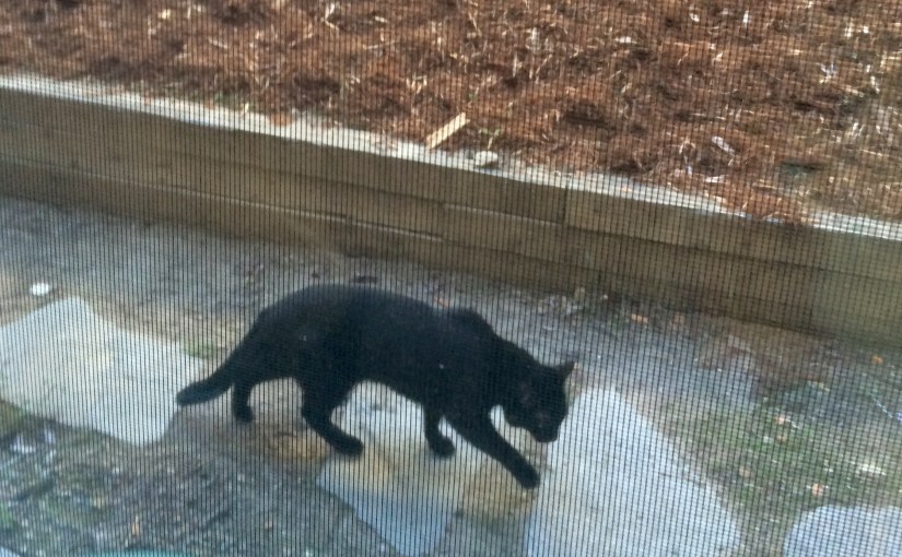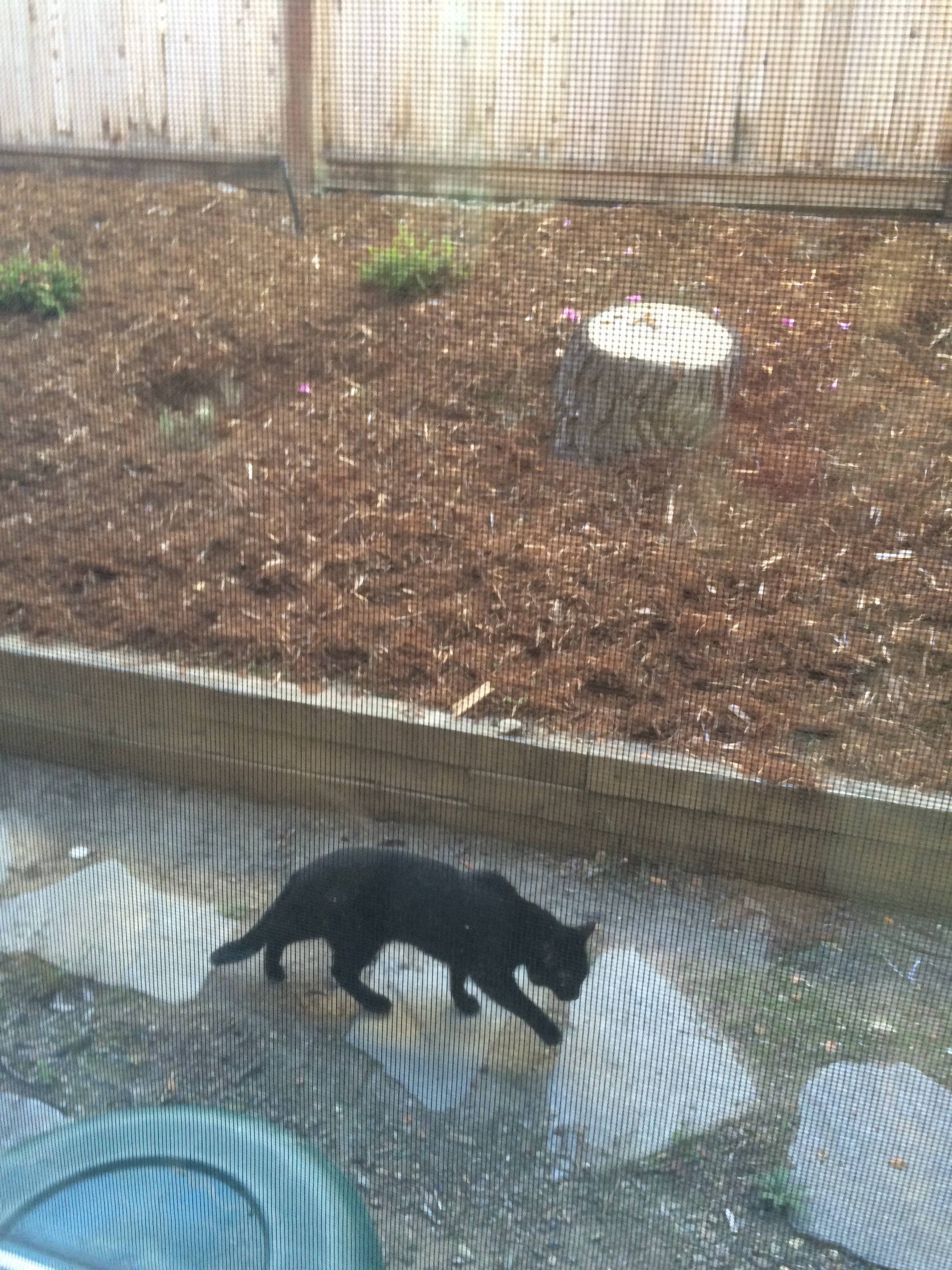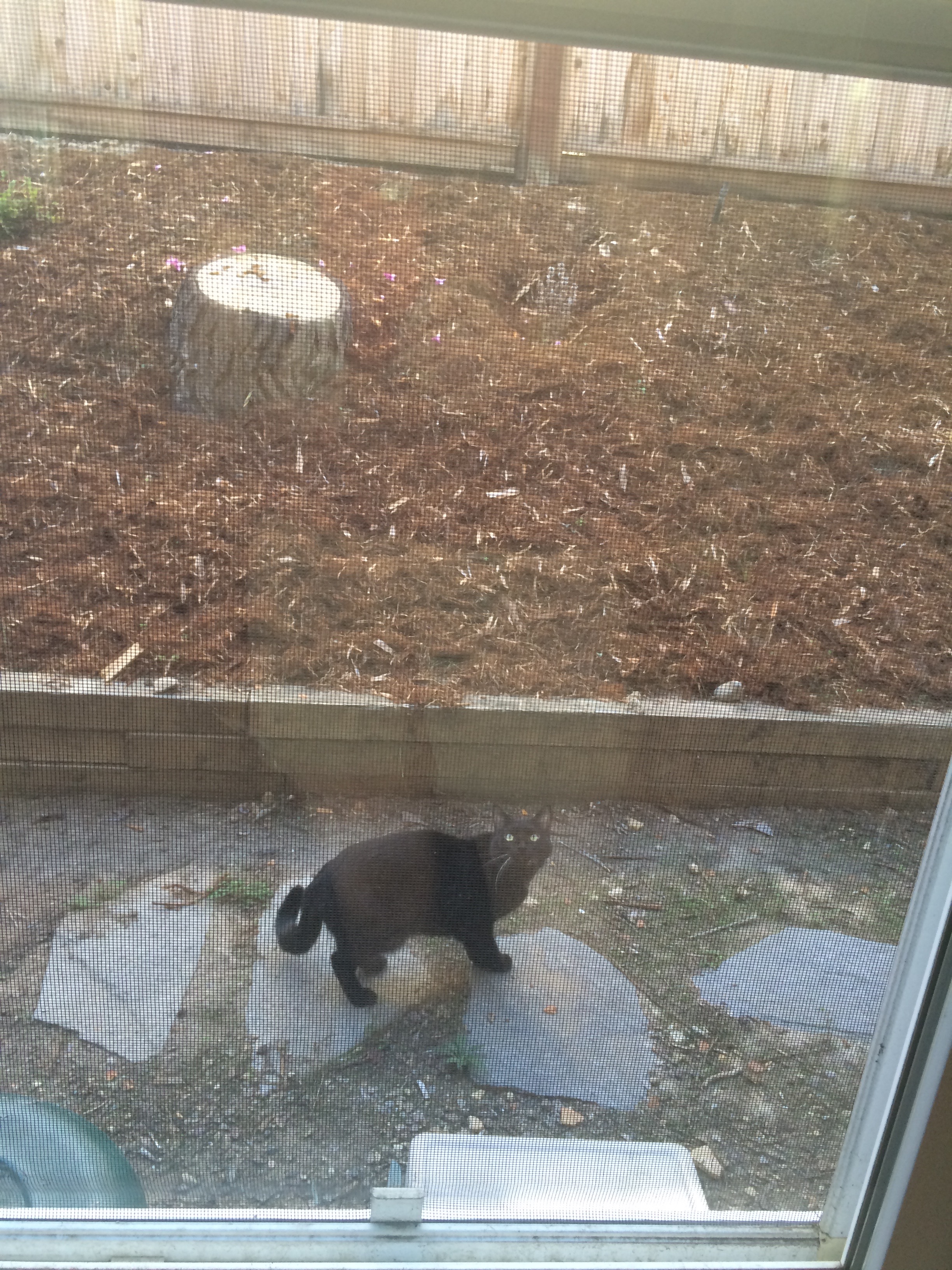 Sat down to watch the morning news and scroll through the Facebook feed on my phone only to glance up and discover that my thoroughly indoor cat, Hell Kitty, knows how to open the screen door: