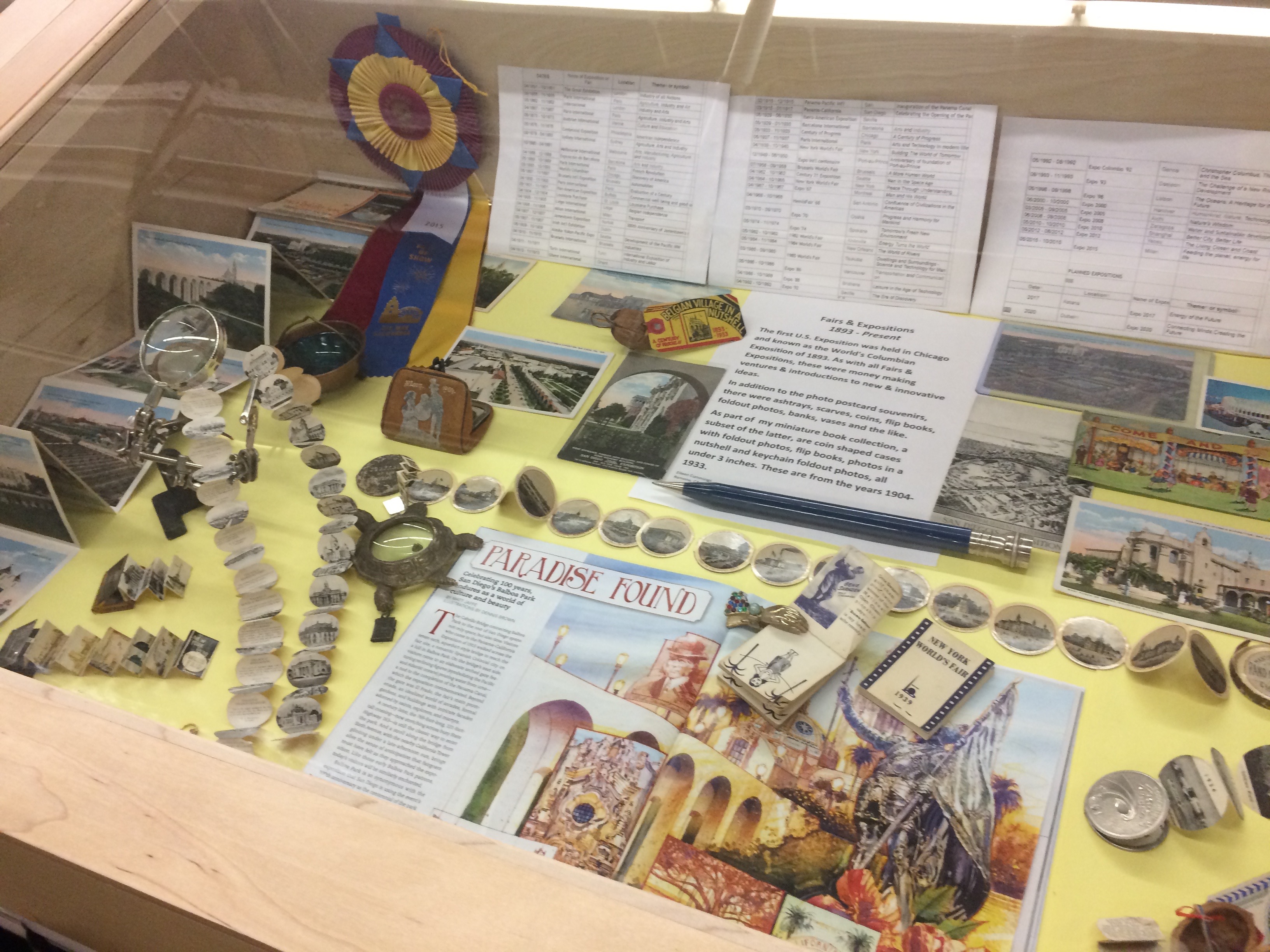 Miniature photos on keychains, necklaces and other souvenirs dating from 1900 to 1980… totally cool. Another collection was similar, but all from world fairs and expositions… equally cool.