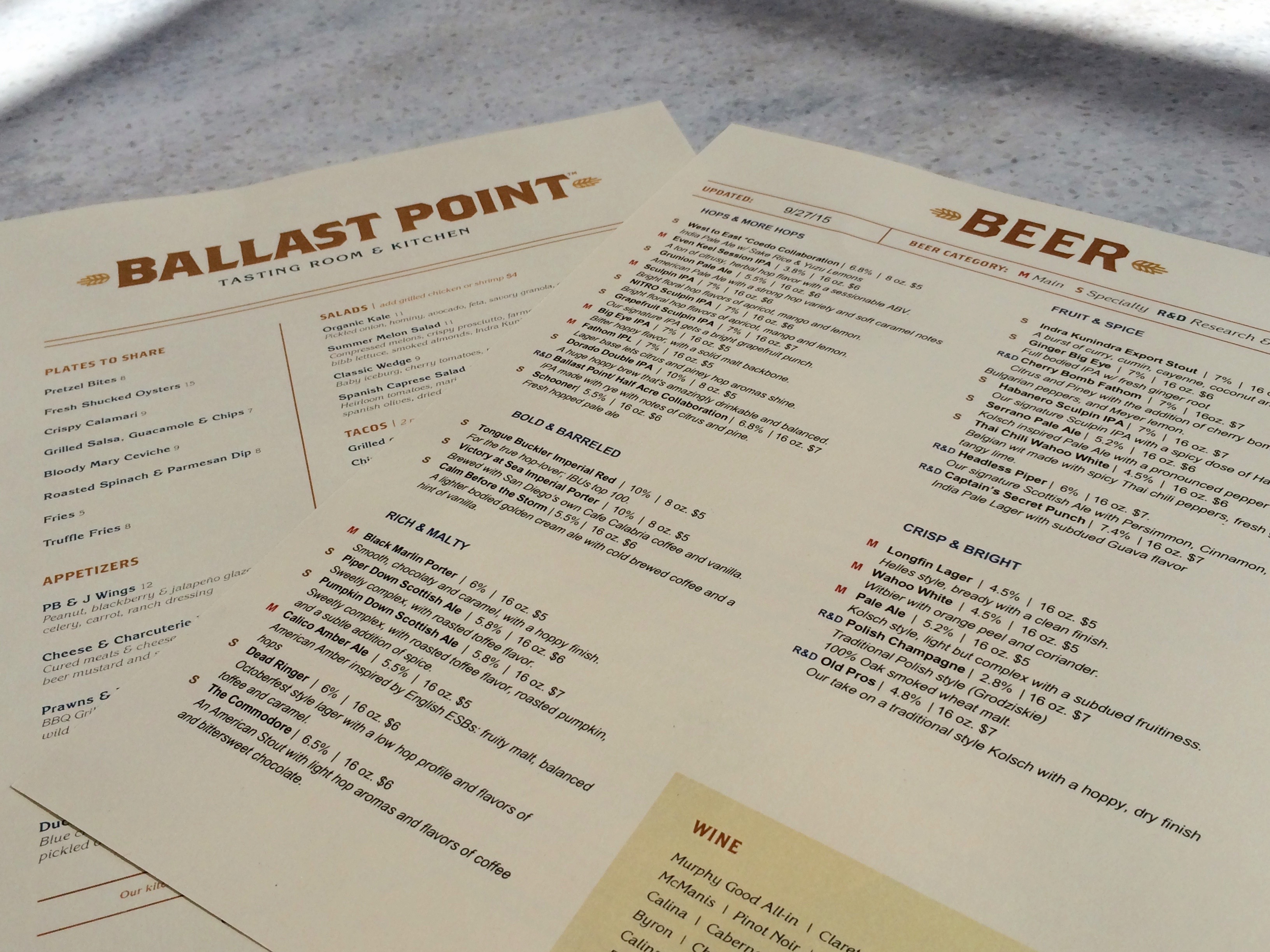 How about hitting Ballast Point in Little Italy for a snack and, true to this year’s challenge, try a different drink? Well, don’t mind if I do!