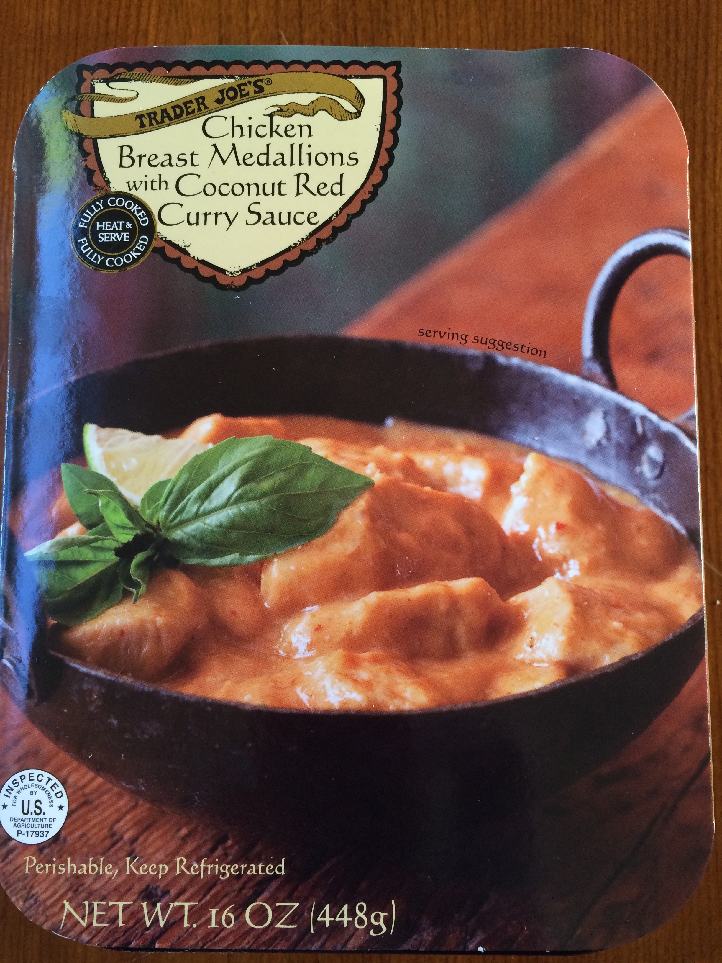 Tonight I made them try Trader Joe’s Chicken Breast Medallions with Coconut Red Curry Sauce. The photos all stink tonight, sorry… lost my mojo for the day, what can I say.