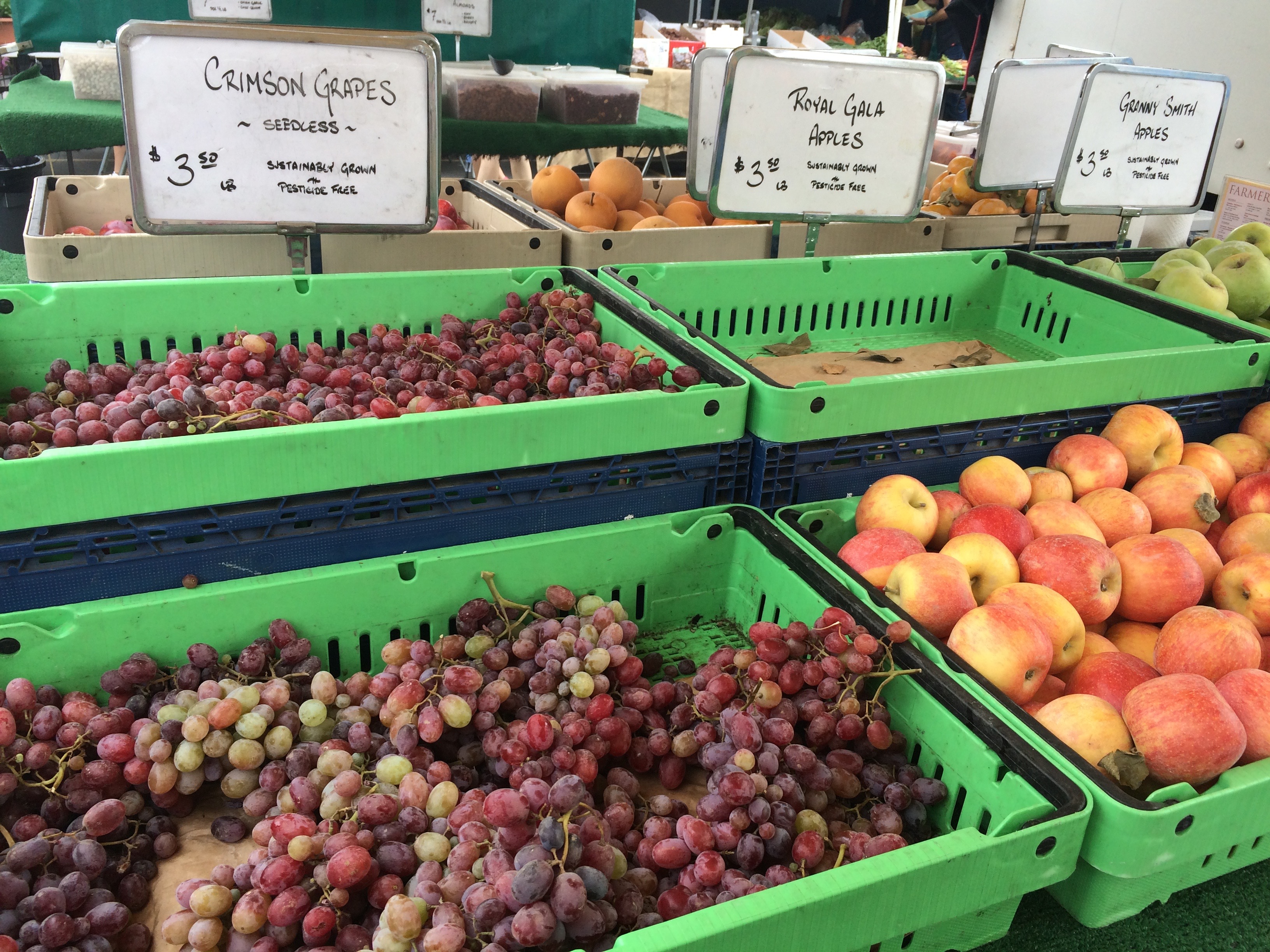 Smit Farms sells at several markets I visited this week, and I bought their cherry apple cider at Mira Mesa’s market, their onion and garlic pistachios at the Ocean Beach market, but The Husband was the one to cave in to their produce this time. The apple samples pushed him over the edge- we are now the proud owners of two pounds of honey crisps and one pound of those delicious grapes.